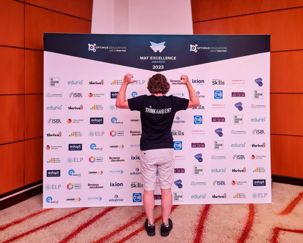Qui a deux pouces et installe des écrans graphiques à la vitesse de l’éclair ? T HINKFABRIC a été utilisé par Phil, que l’on voit ci-dessous, pour l’installation impeccable en quelques minutes de cette grande toile de fond destinée à être utilisée lors d’un événement. Cet affichage en tissu extensible fonctionne en poussant les bords en caoutchouc dans un cadre métallique. Les graphiques en tissu sont incroyablement légers et se replient dans un format réduit, ce qui permet de les réutiliser ou de les remplacer facilement. Le cadre est l’un des nôtres, et nous l’avons loué pour cet événement spécifique. Les présentoirs en tissu comme celui-ci peuvent être réutilisés et leur remplacement est peu coûteux. Un petit investissement est nécessaire pour le matériel, mais dans les situations de vente au détail, c’est une évidence, mais pour une conférence, il peut être intéressant d’emprunter Phil.